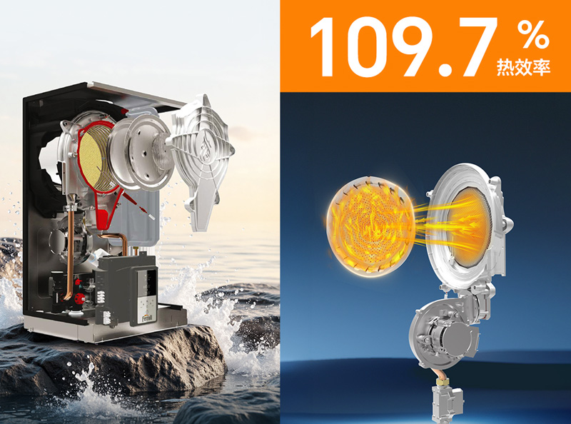 維羅納 PRO 搭載專利太陽花漫射式燃燒器*,熱效率高達 109.7%*,不僅大幅提高了能源利用效率,還能有效降低氮氧化物的排放,且通過歐洲 Hydrogen Ready 氫適配認(rèn)證,可實現(xiàn)20%混氫燃燒,更環(huán)保節(jié)能。